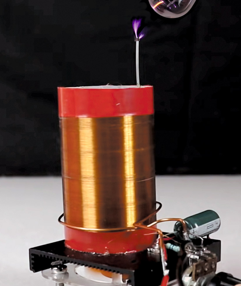 Bobina Tesla que se construye con materiales caseros y reciclados.