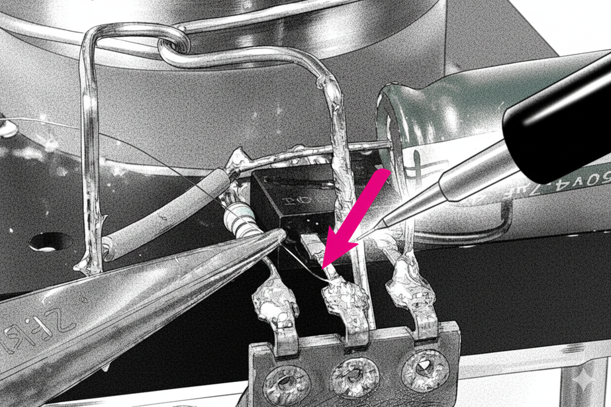 5.- Potenciómetro de 1K: Se conecta a la terminal de la "Puerta" (Gate) del MOSFET para ajustar la frecuencia/corriente. Suelda tal como se ve en el dibujo de abajo.