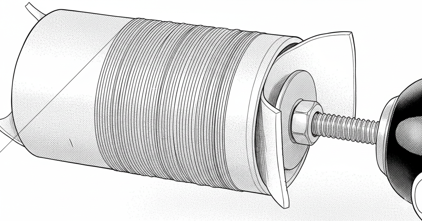 El corazón de la bobina son sus dos devanados. Cuando la corriente pasa por la bobina primaria (la de una sola espira gruesa), genera un campo magnético. Como este campo es oscilante (cambia muy rápido), "atraviesa" la bobina secundaria (las 700 vueltas de alambre fino) e induce en ella una corriente eléctrica.